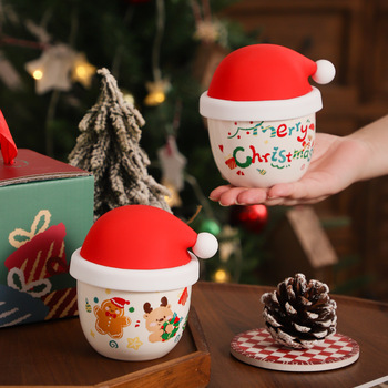 Cute Merry Christmas Mug Small Ceramic Coffee Cup with Red Hat