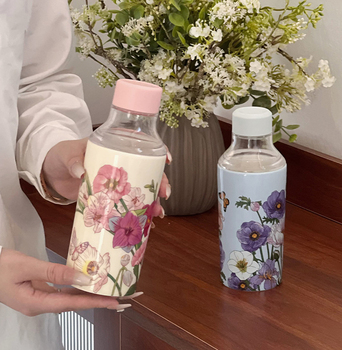 Wholesale Aesthetic Floral Ceramic Water Bottle Creative Flower Glass Drinking Bottle for Girls
