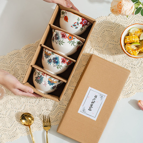 Vente en gros Lot de 4 bols en céramique Petits bols à soupe en porcelaine à fleurs faits à la main Bols de service allant au micro-ondes pour la cuisine