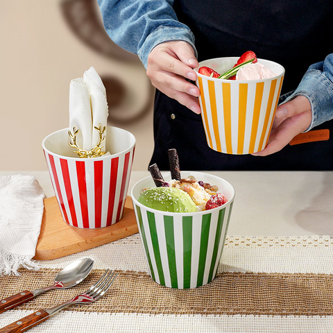 Grand bol de crème glacée Tasse à collation réutilisable Récipient à pop-corn rayé peint à la main pour la maison