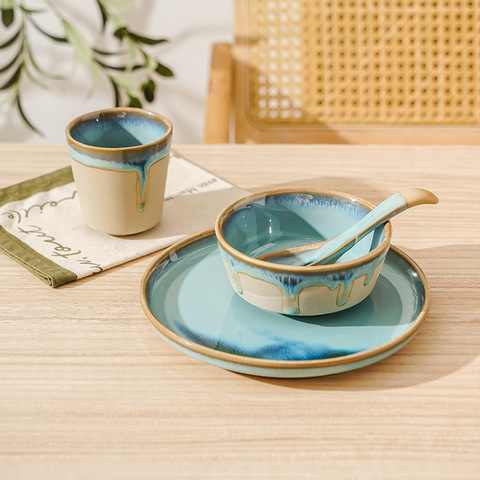 Hete Verkopende Keramische Serviessets Handgemaakte Reactieve Glazuurborden En Kommen Serviesgoed Voor De Keuken