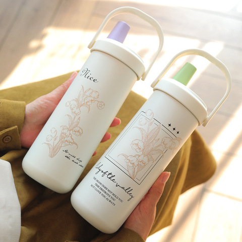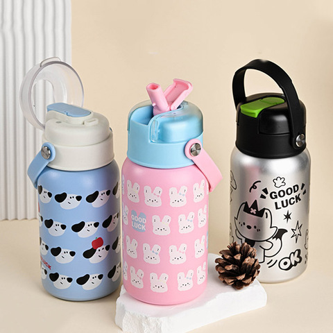 Nouveau Produit Bouteille d'Eau Thermique en Métal pour Étudiants Bouteille d'Eau en Acier Inoxydable avec Paille Flip avec Poignée
