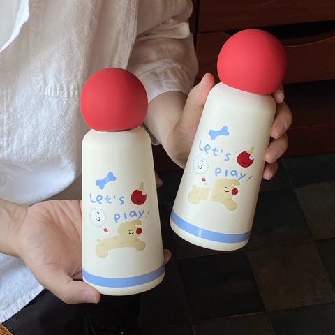 Bouteille d'eau isolée en acier inoxydable de 350ml personnalisée Bouteille d'eau pour enfants étudiants mignons avec bouchon à bille