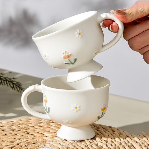 500 מ "ל ספל קפה גדול פרח מקרמיקה כוס תה חרסינה