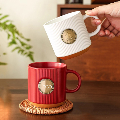 ספל קרמיקה מעוטר בהתאמה אישית עם תג נחושת קפה פסים אישית כוס קפה פסים