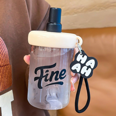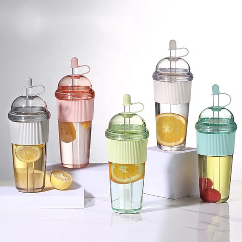 500Ml Draagbare Plastic Tuimelkopjes Met Rietje Plastic Drinkwaterfles Met Touw