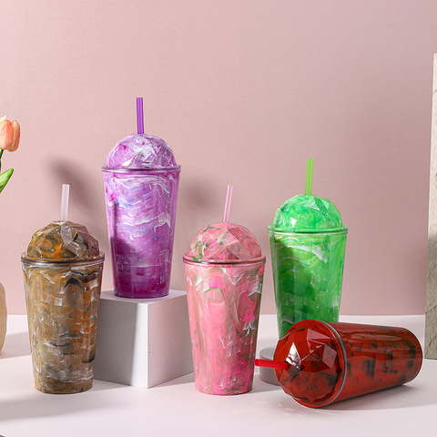 16Oz Herbruikbare Plastic Koffiekopje Steen Getextureerde Koude Drank Tuimelaar Met Deksel En Stro