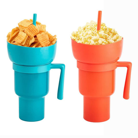 Draagbare Plastic Snack En Drink Cup 32 Oz Herbruikbare Stadion Tumbler Met Kom 2 In 1 Reisbeker Met Stro