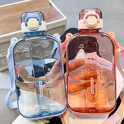 Bình Nước Phẳng Bằng Nhựa 750Ml Cầm Tay Có Bút Đánh Dấu Thời Gian